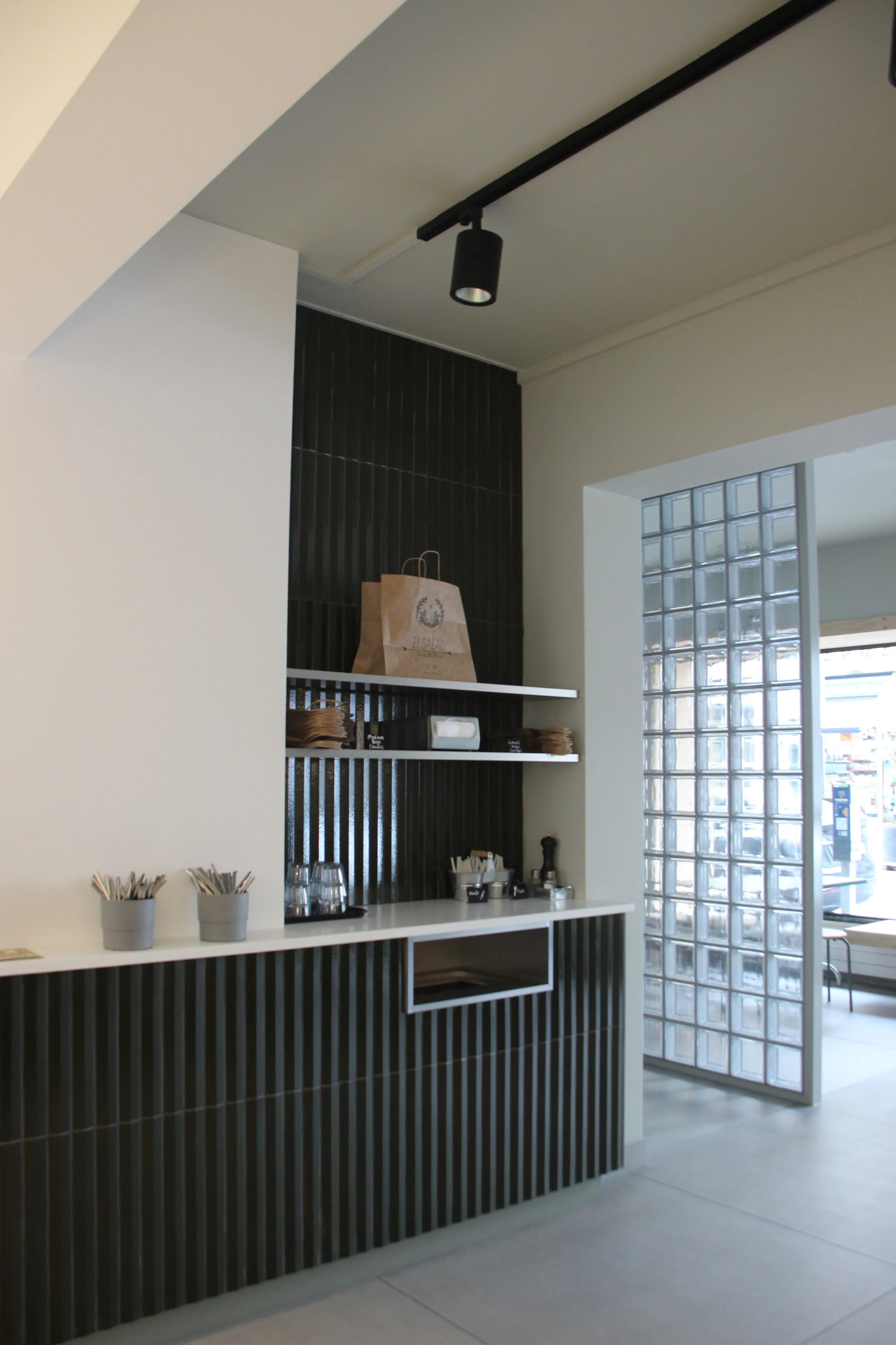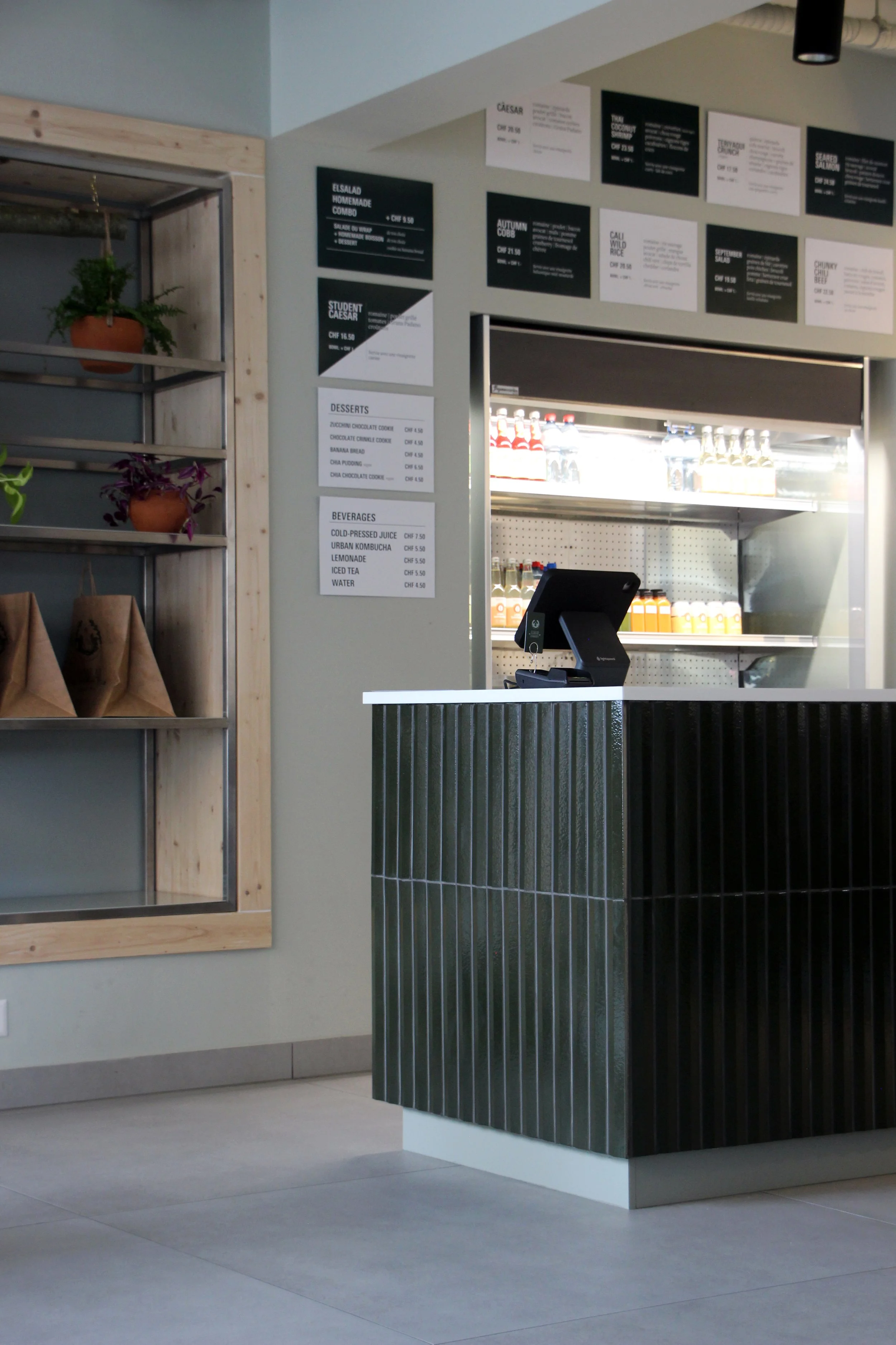 Nyon. weitere Filiale. Behalten was gut ist. Holznischen beibehalten. Frisch, ehrlich, beständig, gesund, leicht, FarbkonzeptGliederung in drei Bereiche: Bestellen, Abholen, Essen
